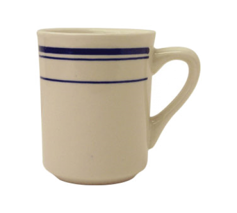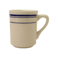 Toledo Mug, 8-1/2 oz., 3" dia. x 3-7/8"H, round, with handle, microwave & dishwasher safe, lead free, ceramic, American White with blue band, Catania™