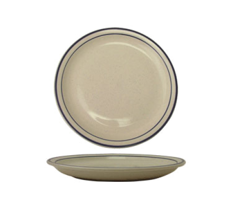 Plate, 10-1/2" dia., round, narrow rim, microwave & dishwasher safe, lead free, ceramic, American White with Blue speckle & rim, Danube™