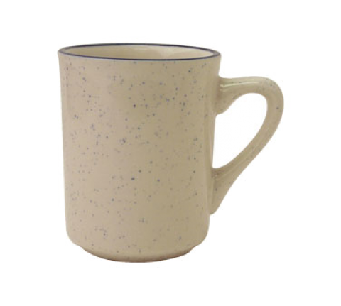 Toledo Cup, 8-1/2 oz., 3" dia. x 3-7/8"H, round, narrow rim, with handle, microwave & dishwasher safe, lead free, ceramic, American White with Blue speckle & rim, Danube™