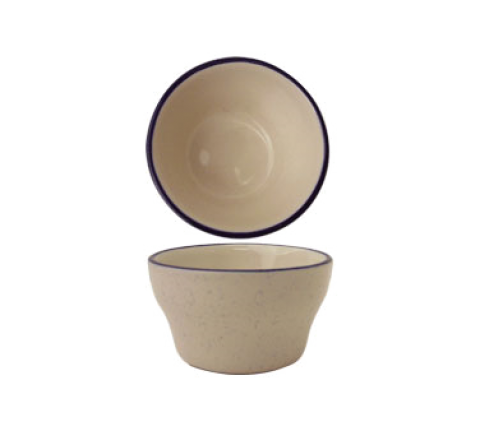 Bouillon, 7-1/4 oz., 4" dia. x 2-3/8"H, round, narrow rim, microwave & dishwasher safe, lead free, ceramic, American White with Blue speckle & rim, Danube™