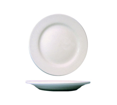 Plate, 11" dia., round, wide rim, rolled edge, fully vitrified, microwave & dishwasher safe, lead free, porcelain, European White, Dover™