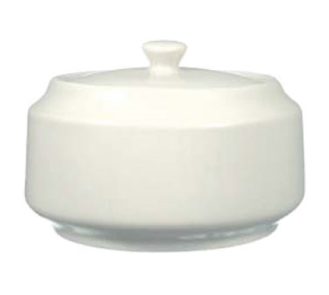 Sugar Bowl, 13 oz., 4-1/2" dia. x 3-3/8"H with lid, round, rolled edge, fully vitrified, microwave & dishwasher safe, lead free, porcelain, European White, Dover™