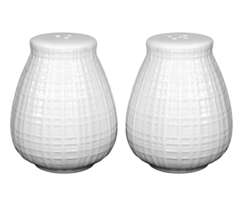 Salt & Pepper Shaker Set, 2" dia. x 2-5/8"H, round, fully vitrified, microwave & dishwasher safe, lead free, embossed pattern, porcelain, Bright White, Dresden™ (sold in 12 sets)
