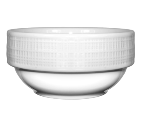 Bowl, 12 oz., 4-3/8" dia. x 2-1/8"H, round, fully vitrified, microwave & dishwasher safe, lead free, embossed pattern, porcelain, Bright White, Dresden™