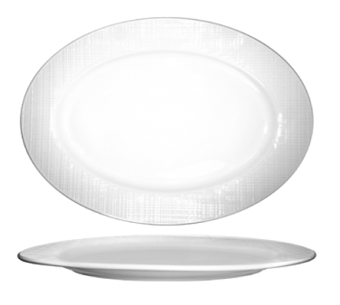 Platter, 14-1/8" x 9-7/8", oval, fully vitrified, microwave & dishwasher safe, lead free, embossed pattern, porcelain, Bright White, Dresden™