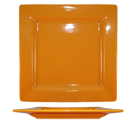 Plate, 10-3/4"W x 10-3/4"D x 1" H, square, wide rim, rolled edge, fully vitrified, microwave & dishwasher safe, lead free, stoneware, butternut, Elite Harvestâ„¢