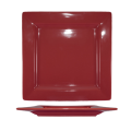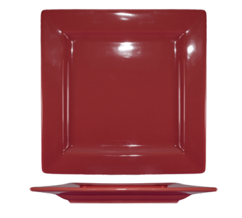 Plate, 10-3/4"W x 10-3/4"D x 1" H, square, wide rim, rolled edge, fully vitrified, microwave & dishwasher safe, lead free, stoneware, rhubarb, Elite Harvestâ„¢