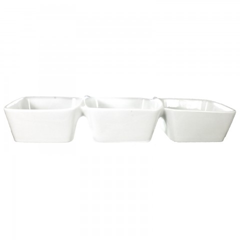 Bowl Dish, 13-1/4" x 4" x 2", (3) 10 oz. compartment wells, square, fully vitrified, microwave & dishwasher safe, lead free, porcelain, Elite™ (6 each per case)