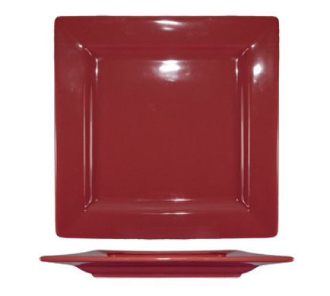 Plate, 12"W x 12"D x 1-1/4"H, square, wide rim, rolled edge, fully vitrified, microwave & dishwasher safe, lead free, stoneware, rhubarb, Elite Harvestâ„¢ (6 each per case)