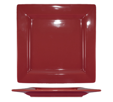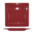Plate, 9-1/8"W x 9-1/8"D x 1"H, square, wide rim, rolled edge, fully vitrified, microwave & dishwasher safe, lead free, stoneware, rhubarb, Elite Harvestâ„¢