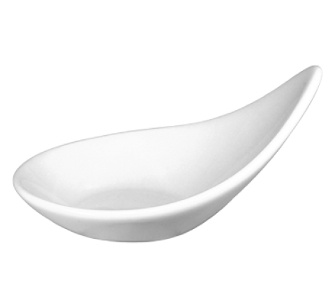 Sampling Bowl, 1-1/2 oz., 4" x 3" x 2"H, tear drop shape, with handle, fully vitrified, microwave & dishwasher safe, lead free, porcelain, Bright White