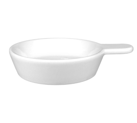 Sampling Skillet Bowl, 2 oz., 3-5/8" dia. x 1"H, 4-1/4"L (with handle) round, fully vitrified, microwave & dishwasher safe, lead free, porcelain, Bright White