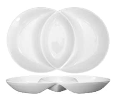 Unity Compartment Plate, 14"W x 9"D x 1-7/8"H, 15 oz. outer wells & 9-1/2 oz. inner well, fully vitrified, microwave & dishwasher safe, lead free, porcelain, Bright White