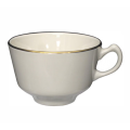 Cup, 7 oz., 3-3/4" dia. x 2-3/8"H, round, with handle, dishwasher safe, lead free, ceramic, American White with gold band, Florentine™