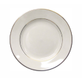 Plate, 9" dia., round, highly polished foot, dishwasher safe, lead free, ceramic, American White with gold band, Florentine™
