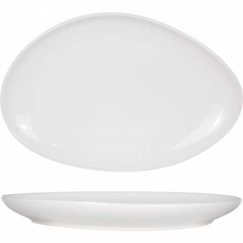 Glacier™ Platter, 11-1/2"L x 8"W x 1-3/8"H, organic oval, porcelain, bright white