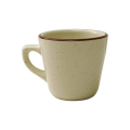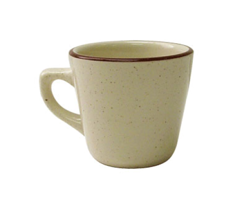 Cup, tall, 7 oz., 3-1/4" dia. x 3-1/8"H, round, narrow rim, with handle, microwave & dishwasher safe, lead free, ceramic, American White with Brown speckle & rim, Granada™