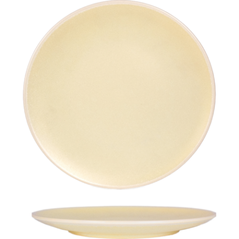 Hearth™ Plate, 10" dia., round, coupe, fits with PCDP-100 stainless steel plate cover, stoneware fully vitrified, lemon reactive glaze