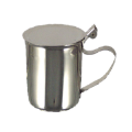 Server, 10 oz., 4-1/2" dia. x 3-1/2"H, with hinged cover, closed handle, stackable, stainless steel, Holloware