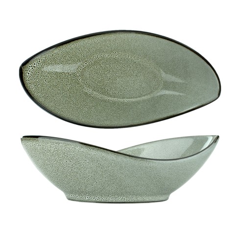 Bowl, 14 oz., 9" x 4-1/2" x 3"H, oval, microwave & dishwasher safe, lead free, fully vitrified stoneware, hand painted reactive glaze finish, Ash, Luna™