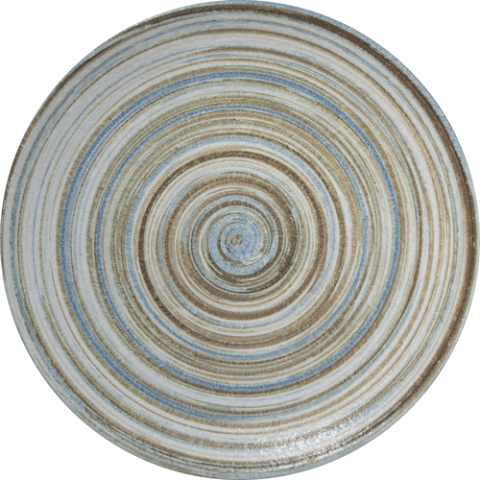 Plate, 7"D, Round, Distinctive Profile, Porcelain with underglaze decoration, Cream with Soft Blue & Brown Swirls, Moroccan™