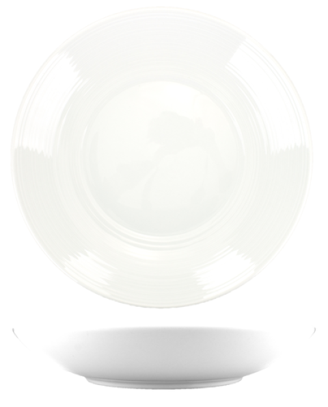 Plate, 11-1/4" dia. X 2"H, round, wide patterned rim, microwave & dishwasher safe, lead free, fully vitrified, porcelain bright white, Marzano™