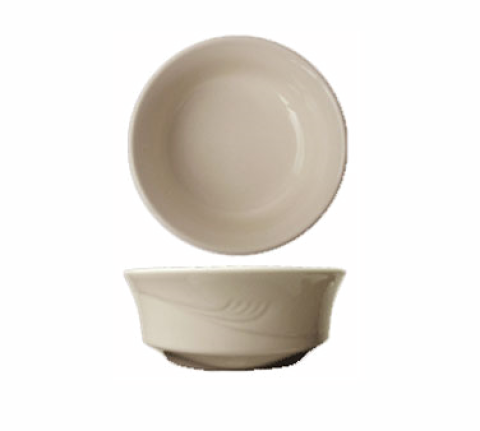 Bowl, 13 oz., 5-1/8" dia. x 2"H, round, embossed, rolled edge, highly polished foot, microwave & dishwasher safe, lead free, ceramic, American White, Newport™