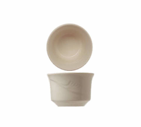 Bouillon, 7 oz., 3-5/8" dia. x 2-1/2"H, round, embossed, rolled edge, highly polished foot, microwave & dishwasher safe, lead free, ceramic, American White, Newport™