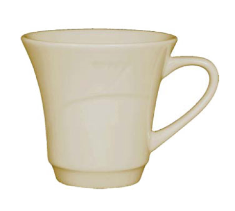 Petal Cup, 7 oz., 3-3/8" dia. x 3-1/8"H, round, with handle, embossed, highly polished foot, microwave & dishwasher safe, lead free, ceramic, American White, Newport™