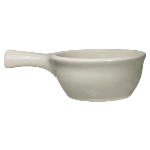 Soup Crock, 10 oz., 5" dia. x 2-1/4"H, round, 7-3/8"L with handle, oven/microwave/dishwasher safe, oven safe to 450°F, lead free, stoneware-ceramic, American White