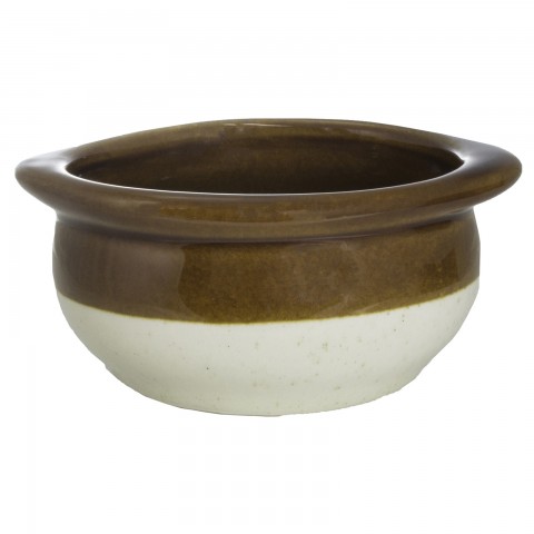 Soup Crock, 12 oz., 5-1/4" dia. x 2-3/8"H, round, oven/microwave/dishwasher safe, oven safe to 450°F, lead free, stoneware-ceramic, American White with caramel and beige