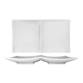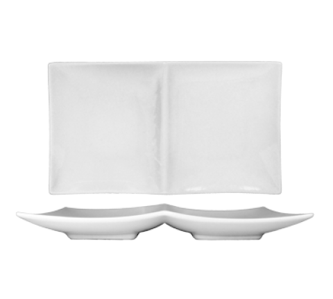 Plate, 9-3/4" x 5-7/8", rectangular, coupe, 2 wells divided, fully vitrified, microwave & dishwasher safe, lead free, porcelain, Bright White, Paragon™