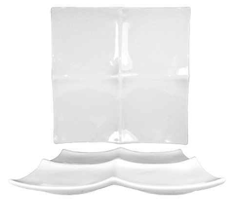 Plate, 7-3/4"W x 7-3/4"D x 1/2"H, square, coupe, 4 wells divided, fully vitrified, microwave & dishwasher safe, lead free, porcelain, Bright White, Paragon™