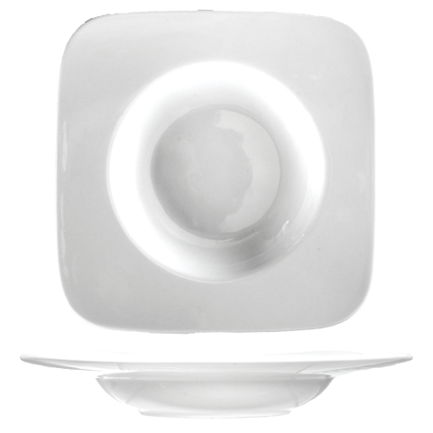 Pasta/Salad Bowl, 13 oz., 9-3/4" x 1-3/4"H, square with round well, wide rim, fully vitrified, microwave & dishwasher safe, lead free, porcelain, Bright White, Paragon™
