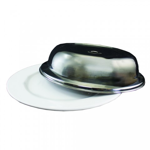 Plate Cover, 11-1/4" dia. x 2-1/8" fits 10-1/4" to 10-3/4", fits: AM-16, BR-16, CT-16, DO-16, DR-16, GR-16, MZ-16, RO-16, SY-16, VE-16, VI-16 & Y-16round, stainless steel, Holloware