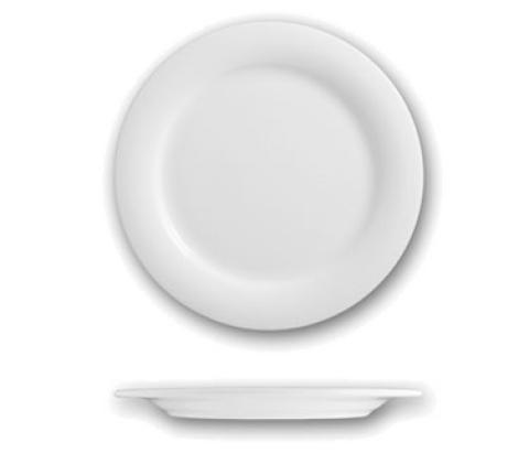 Plate, 10-3/8" dia., round, wide rim, rolled edge, fully vitrified, chip resistant, microwave & dishwasher safe, lead free, "Reflections of Elegance" bone china, white, Phoenix™