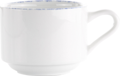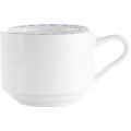 Stacking Cup, 8 oz., 3-5/8"D x 2-1/2"H, Straight Sided Profile ,Round with Handle, Fits with PR-2-CB Saucer, European White with Blue, Porcelain with underglaze decoration, Provincialâ„¢