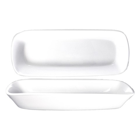 Dish, 18 oz., 10-1/4" x 4-1/8", rectangular, fully vitrified, microwave & dishwasher safe, lead free, porcelain, European White, Quad™