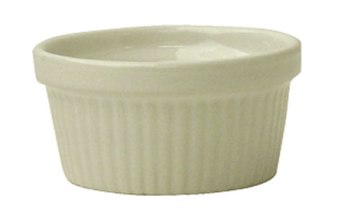 Ramekin, 8 oz., 4-3/8" dia. x 1-3/4"H, round, fluted, fully vitrified, oven/microwave/dishwasher safe, oven safe to 450°F, lead free, stoneware-ceramic, American White