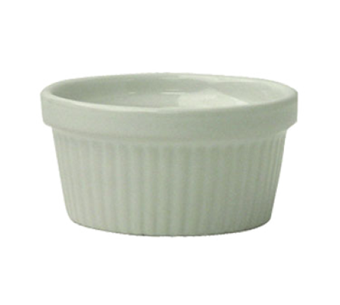 Ramekin, 8 oz., 4-3/8" dia. x 1-3/4"H, round, fluted, fully vitrified, oven/microwave/dishwasher safe, oven safe to 450°F, lead free, stoneware, European White