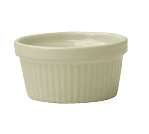 Ramekin, 2 oz., 2-3/4" dia. x 1-3/8"H, round, fluted, fully vitrified, oven/microwave/dishwasher safe, oven safe to 450°F, lead free, stoneware-ceramic, American White