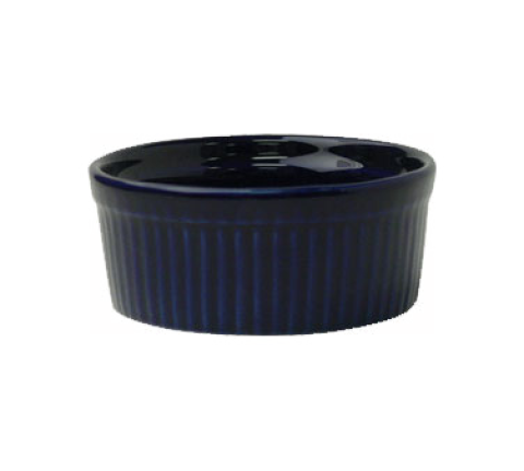 Ramekin, 4 oz., 3-5/8" dia. x 2"H, round, fluted, oven/microwave/dishwasher safe, oven safe to 450°F, lead free, ceramic, cobalt blue, Cancun™