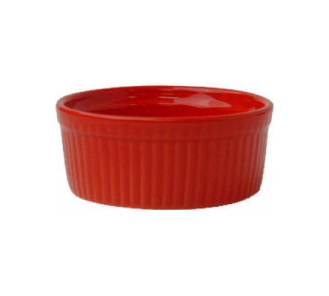 Ramekin, 4 oz., 3-5/8" dia. x 2"H, round, fluted, oven/microwave/dishwasher safe, oven safe to 450°F, lead free, ceramic, crimson red, Cancun™
