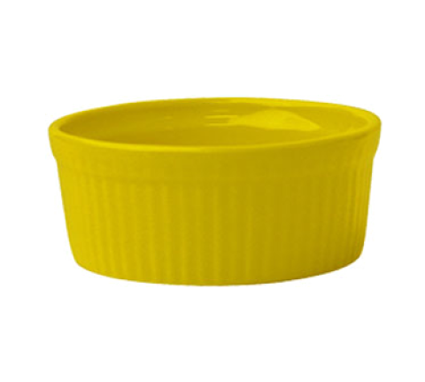 Ramekin, 6 oz., 4" dia. x 1-3/4"H, round, fluted, oven/microwave/dishwasher safe, oven safe to 450°F, lead free, ceramic, yellow, Cancun™