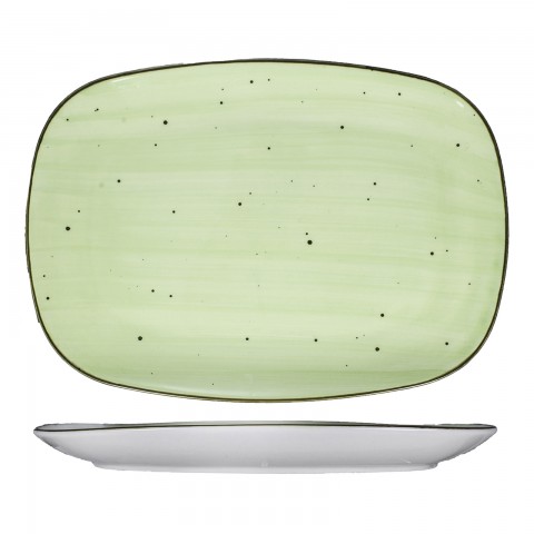 Platter, 12" x 9", oblong, microwave & dishwasher safe, lead free, ceramic, lime, Rotana™