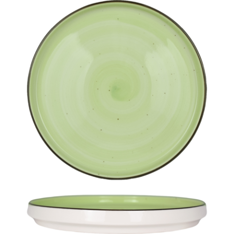 Rotana™ Wall Plate, 8-1/4" dia. x 7/8"H, round, straight edge profile, stoneware fully vitrified with underglaze decoration, lime with brown trim & speckles
