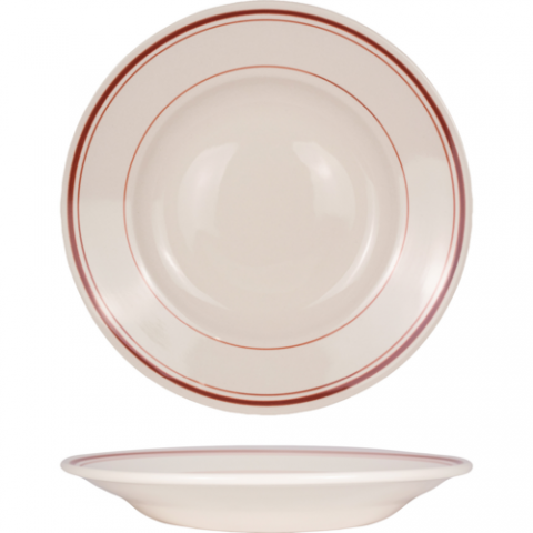 Rosewood™ Pasta Bowl, 10-7/8"D x 2"H, 22oz. capacity, round, wide rim, stoneware, fully vitrified with underglaze decoration, American white with red band