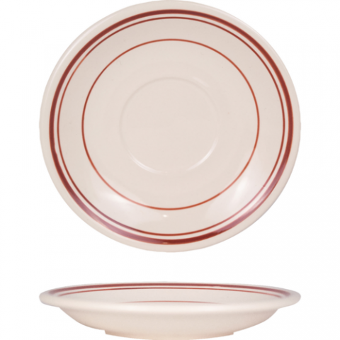 Rosewood™ Saucer, 6"D, round, wide rim, stoneware, fully vitrified with underglaze decoration, American white with red band (fits with: RW-4 bouillon and RW-17 Toledo mug)