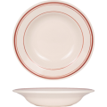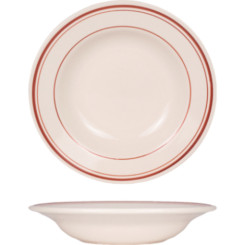 Rosewood™ Soup Bowl, 8-7/8"D x 1-5/8"H, 10oz. capacity, round, wide rim, stoneware, fully vitrified with underglaze decoration, American white with red band