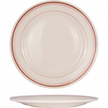 Rosewood™ Plate, 7-1/8"dia, round, wide rim, stoneware, fully vitrified with underglaze decoration, American white with red band